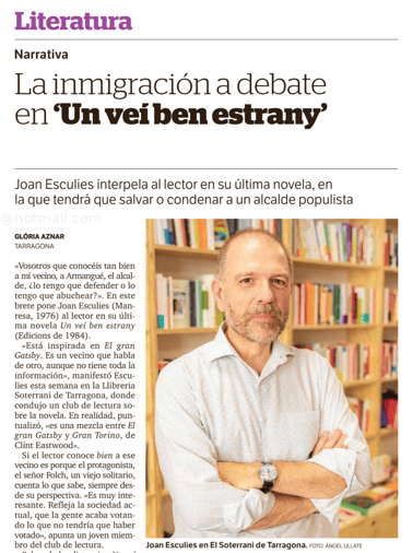 Amb ressons del realisme americà, Joan Esculies ens ofereix un retrat actual i urbà d’una societat canviant, fragmentada i saturada emocionalment. En la seva novel·la la ficció no és un artifici, es posa al servei de la realitat per construir l’imaginari que ens permet reconèixer-nos en un temps que sembla escolar-se sense control.